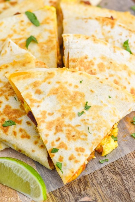 Breakfast quesadillas are oozing with flavor and are perfect for keeping you full all morning long. The fluffy eggs, crisp bacon, green peppers, and melty cheese create an irresistible combo when wrapped in a tortilla shell.