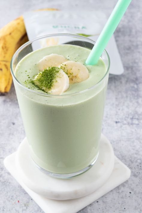 Layer the Ingredients – To a blender, add ice cubes, almond milk, yogurt, spinach, kale, banana, almonds, matcha powder, and sweetener.