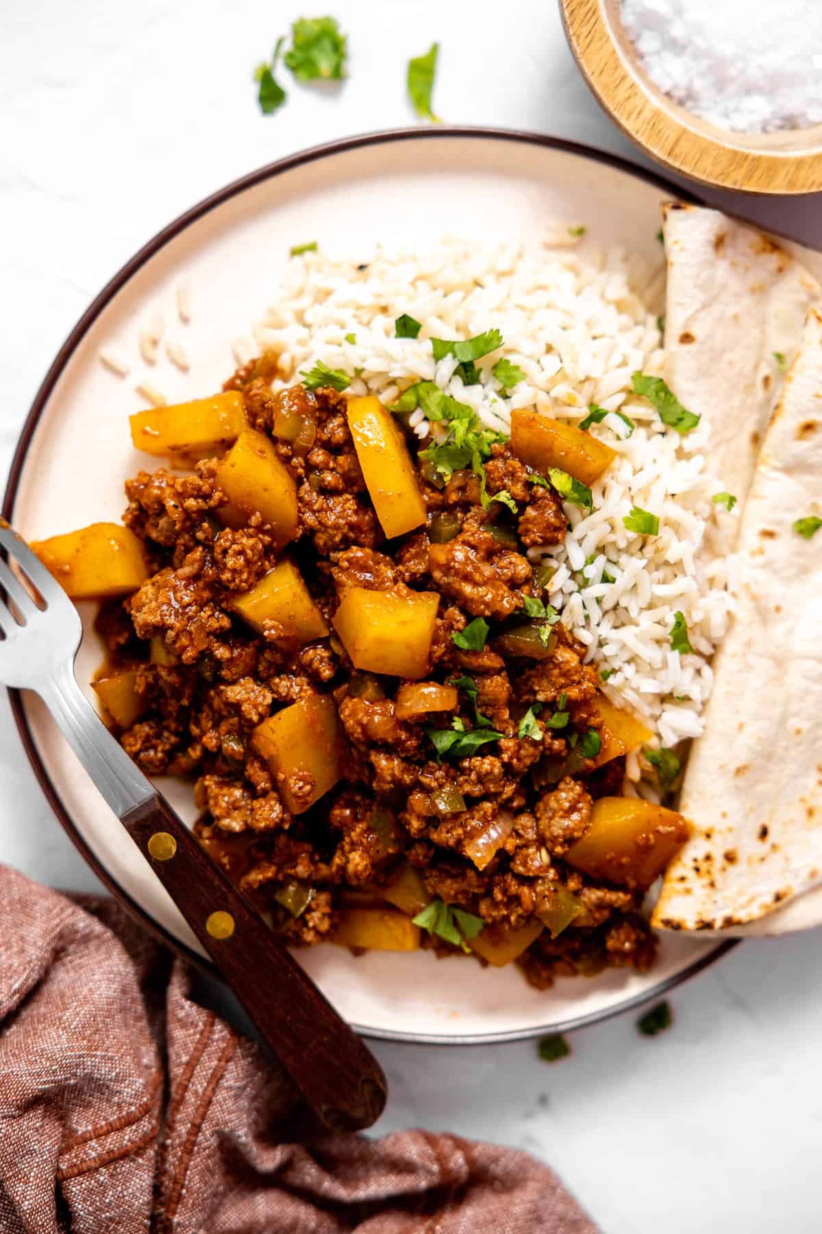 - Add in diced onion, green bell pepper and potatoes. Continue to cook over medium heat until onion and peppers are softened. Add garlic and cook an additional 30 seconds.