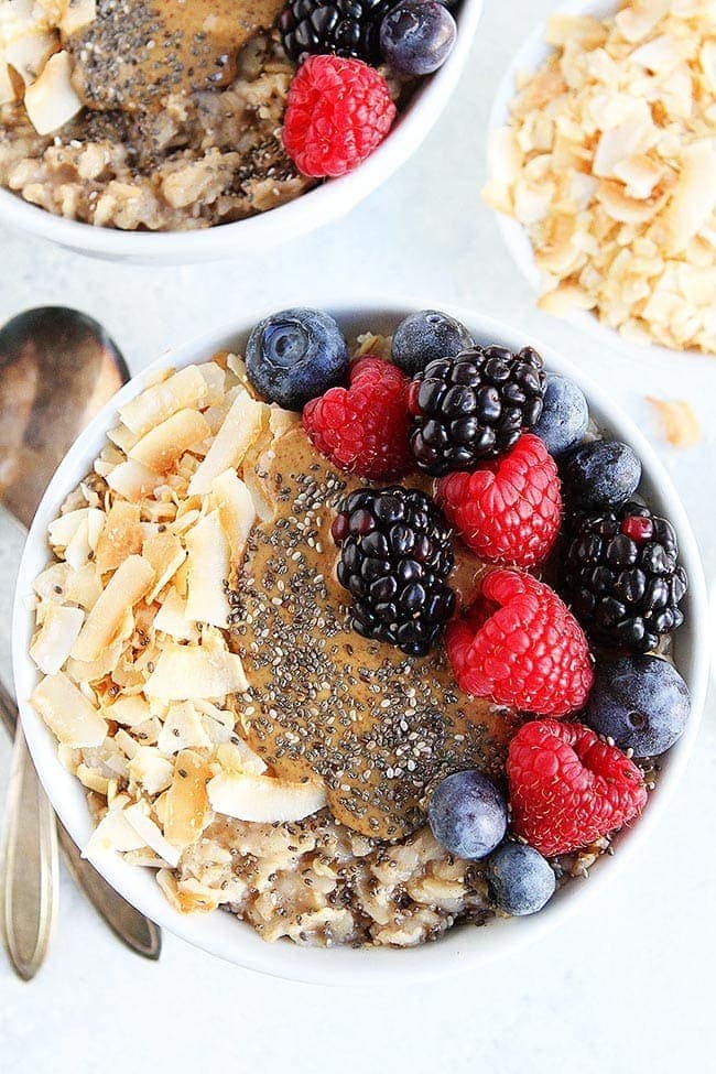 - Divide the oatmeal into bowls and top with desired toppings. Serve warm.