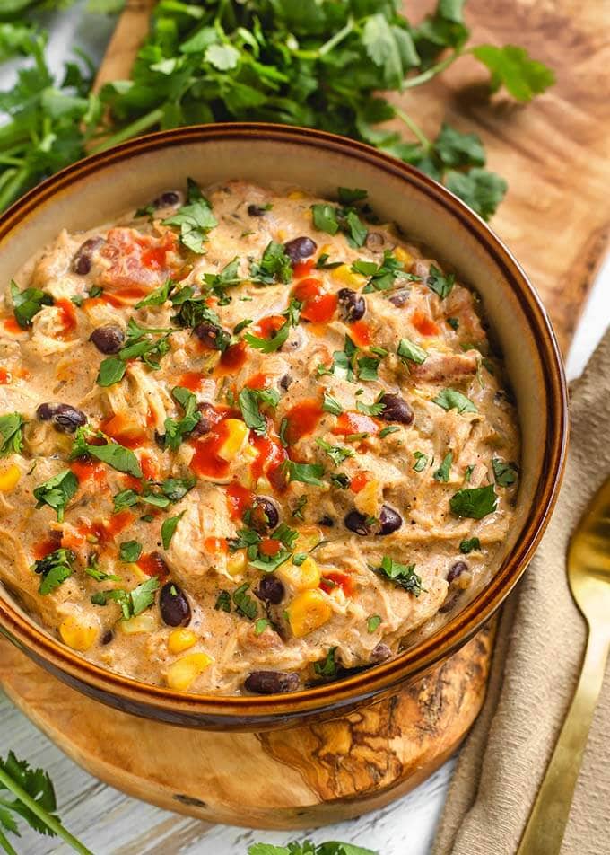 Serve with cilantro, corn chips, avocado, sour cream, jalapeños, or any of your favorite toppings.